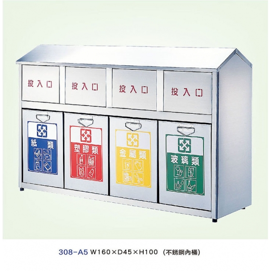 308-A5 不鏽鋼四分類垃圾桶