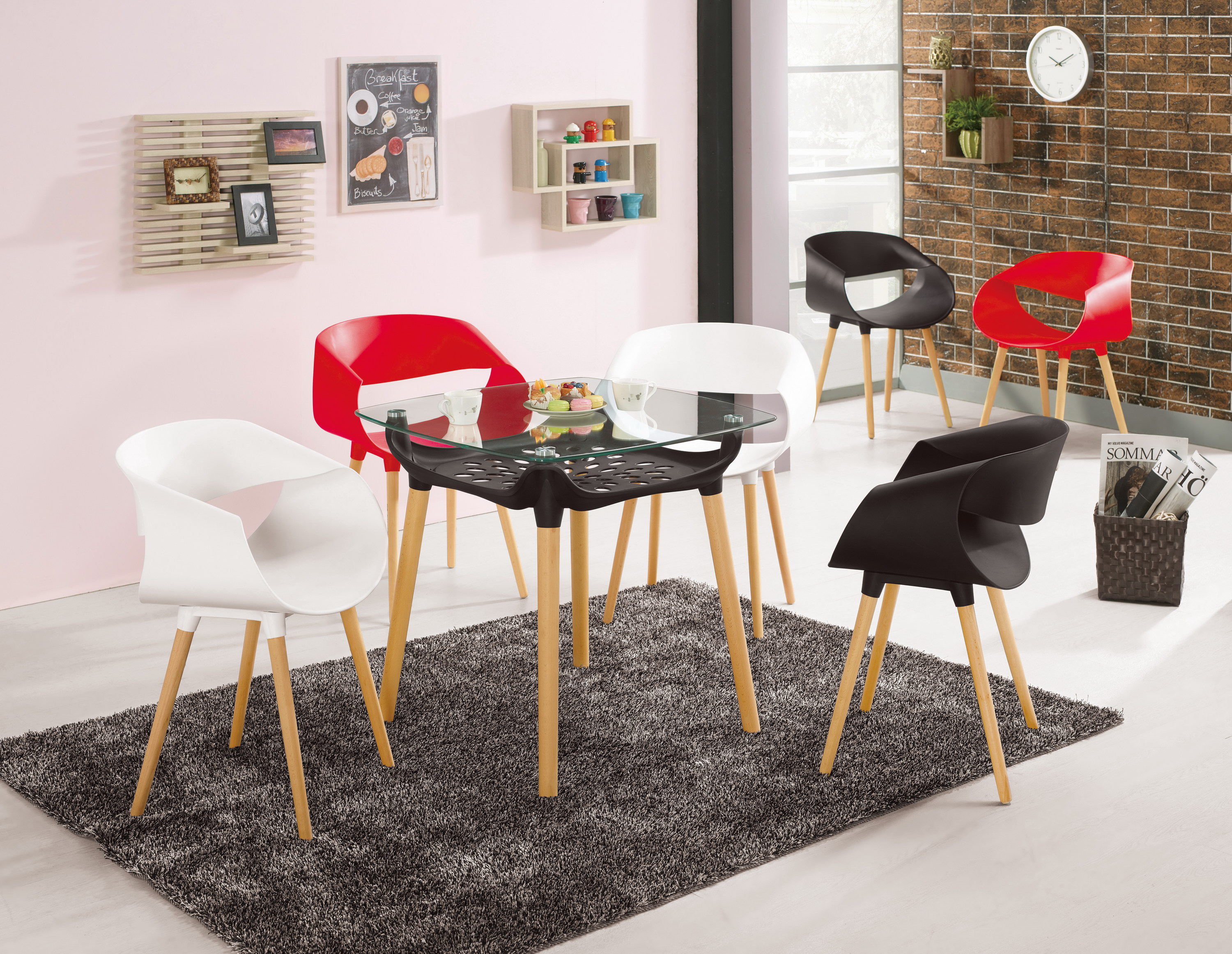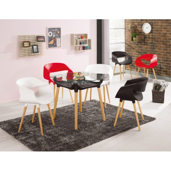 材質-PP塑膠+櫸木實木椅腳